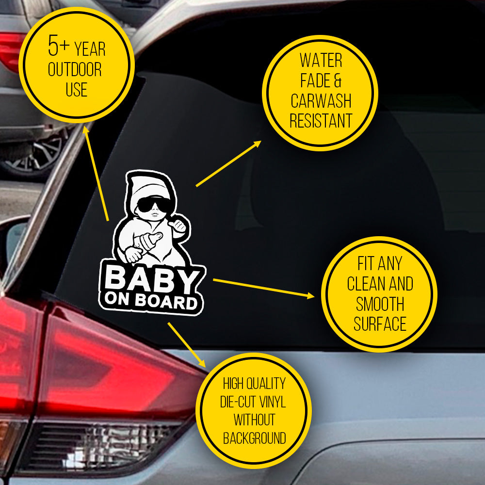 Infuse your daily drives with both charm and safety by displaying our delightful "Baby in Car" sign. This endearing decal serves as a friendly reminder to other drivers about your precious little passenger, helping to foster a safer driving environment. Its presence not only alerts those on the road to drive with extra caution, but it also reduces stress for parents, knowing that others are more aware of their tiny co-pilot.