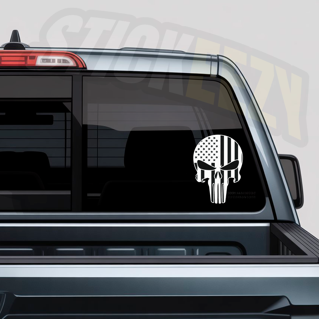 Stand out with our bold Punisher Skull with American Flag Decal. This unique patriotic vinyl sticker combines the iconic skull design with the strength of the stars and stripes. Made from durable, weatherproof vinyl, it’s perfect for cars, trucks, and SUVs. Easy to apply and remove, this decal is a powerful way to show your USA pride with attitude.